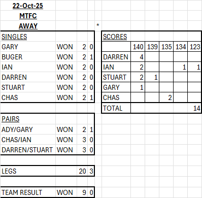 Barton Mills Bell 8-1 Feltwell Social Club 29/10/25